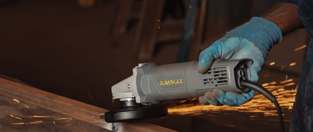 La conception ergonomique de la meuleuse 1050W RAWMAX assure une prise en main stable et sécurisée, même lors d’une utilisation prolongée.